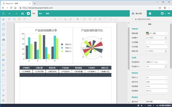 创新的在线报表设计功能,类似微软 Office 产品的使用体验,功能丰富却极易上手。从此,对软件公司而言,客户定制化报表需求再也不用修改软件源代码;对企业 IT 部门而言,让业务部门自主设计所需报表的畅想变成可能。