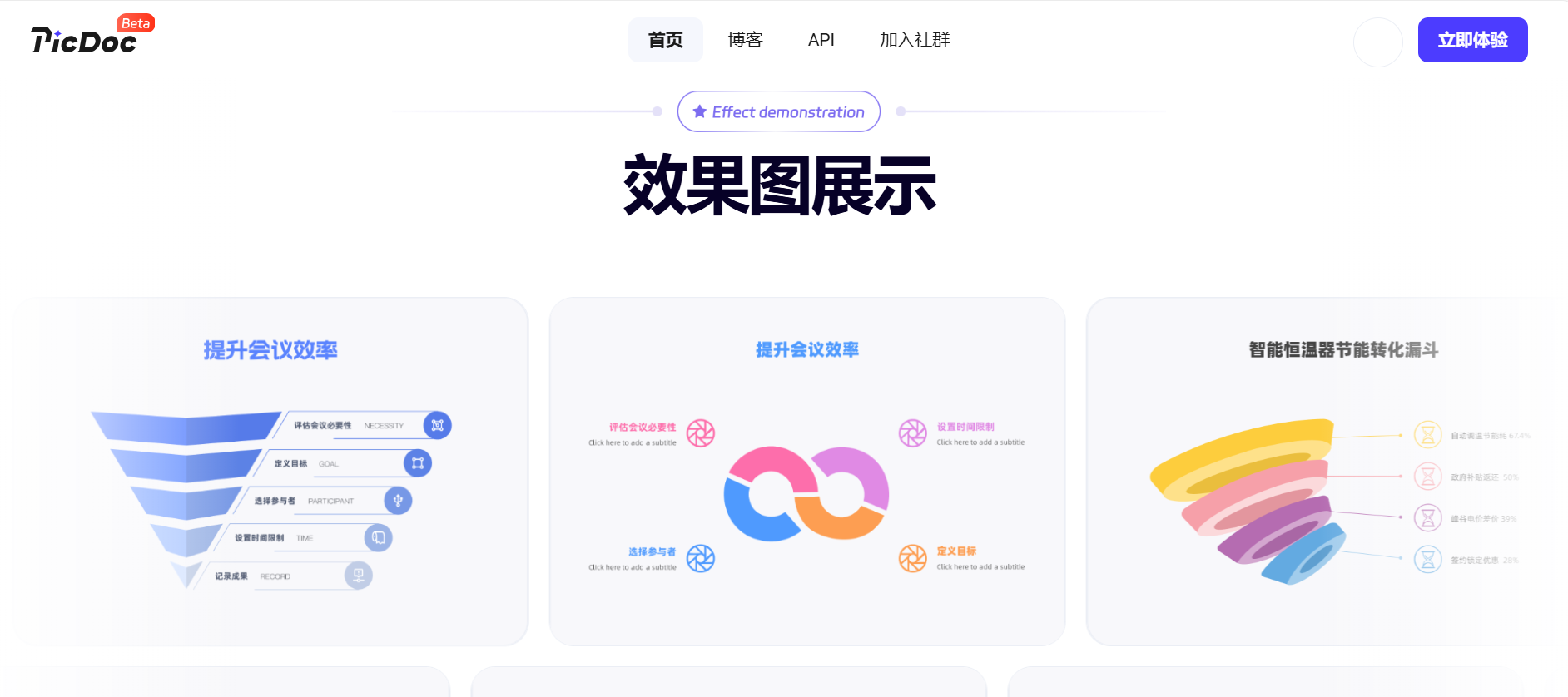 PicDoc是创客贴孵化的AI文本转换图表工具,其核心优势是“中文语义理解”——输入一段文本,AI会自动识别逻辑关系,直接适配相应的信息图模板。例如,输入“产品开发:需求调研→设计→开发→测试→上线”,AI将自动生成带箭头和节点的流程图。