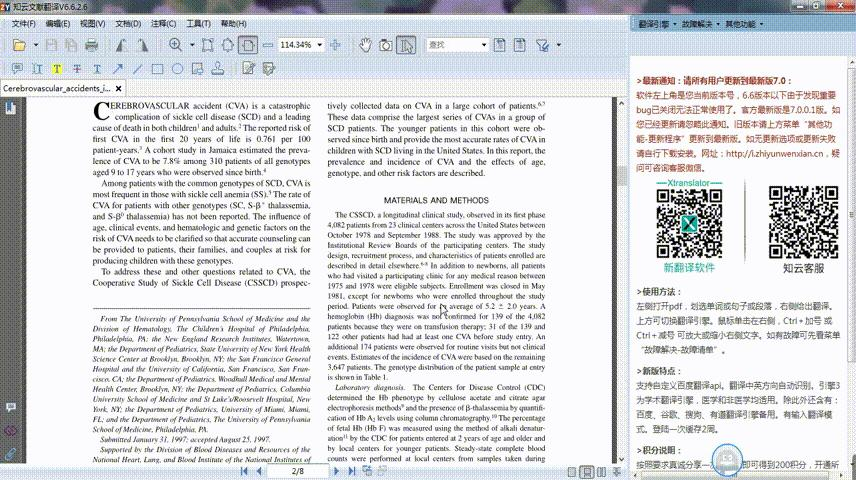 用知云打开一篇英文文献,鼠标划取一段文字,软件右侧展示翻译结果。翻译结果是翻译与原文的对照,十分方便。知云可以当作PDF阅读器来使用。即便是word文档,知云也能直接打开。