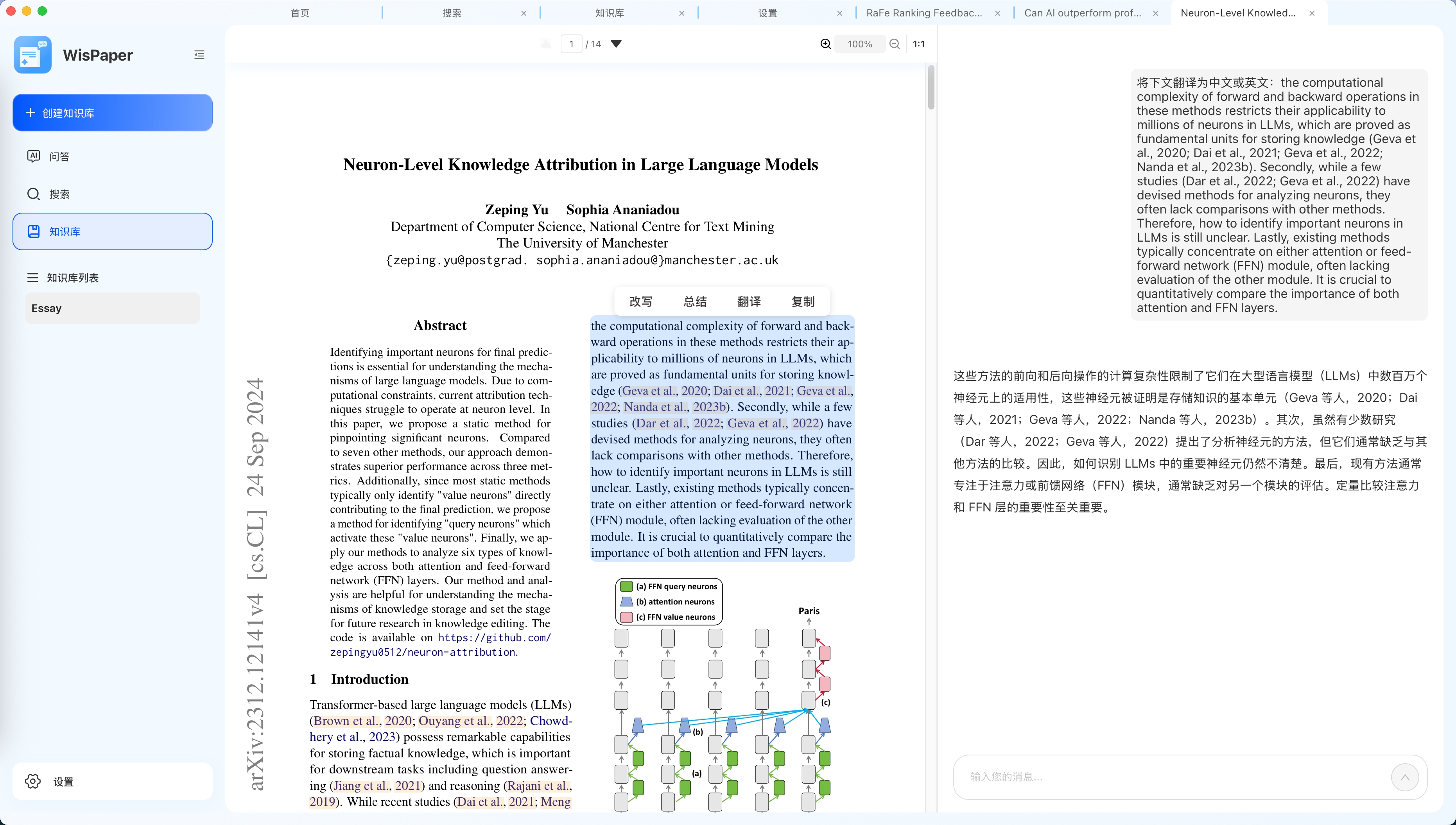 WisPaper支持英文文献的精准段落翻译,帮你突破语言障碍,直达核心内容。学术术语准确,上下文理解到位,流畅解读外文文献。