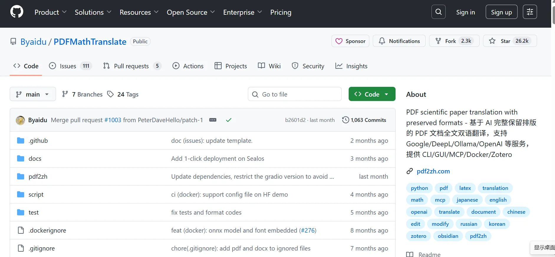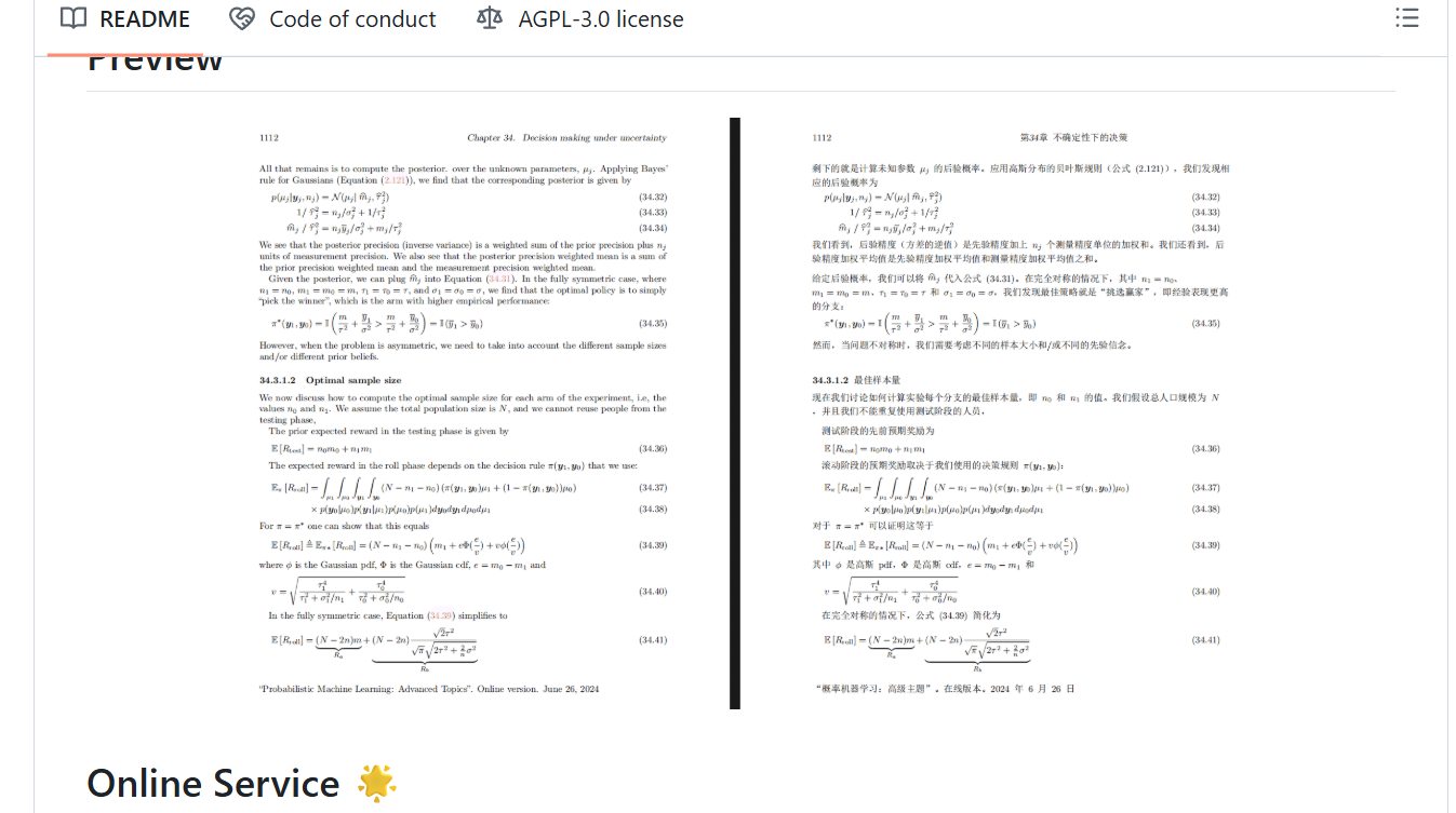 PDFMathTranslate是开源的PDF文档翻译工具,设计用于翻译科技论文等PDF文件,能保留原文的排版,包括公式和图表。PDFMathTranslate支持双语对照,保持原有目录结构。