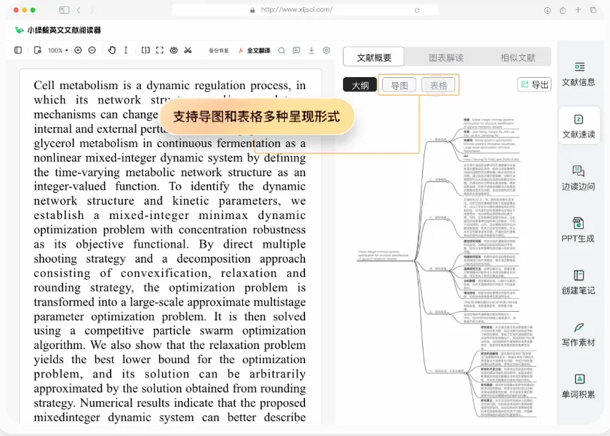 一键提取文献核心要点,支持思维导图模式快速梳理逻辑,辅助深度文献阅读。