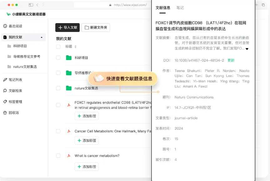 你只需要1分钟就能快速掌握文献精髓,确认这篇文献是否值得细细阅读分析。也不用担心自己鱼的记忆,记不住文献重点了。