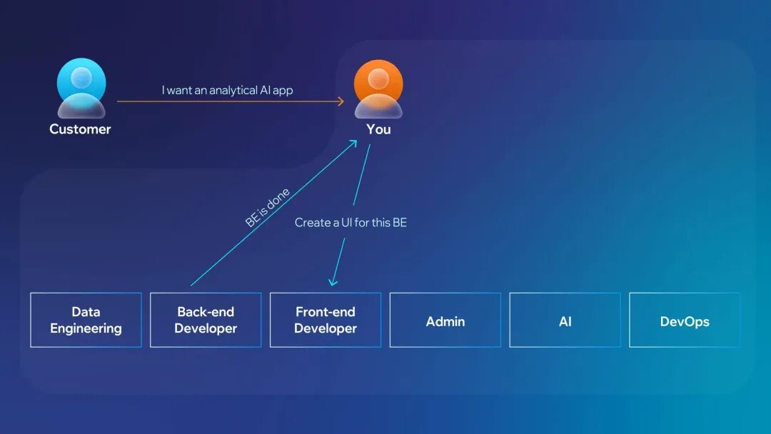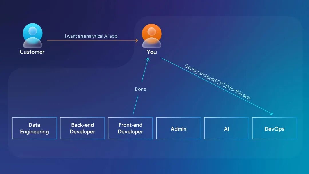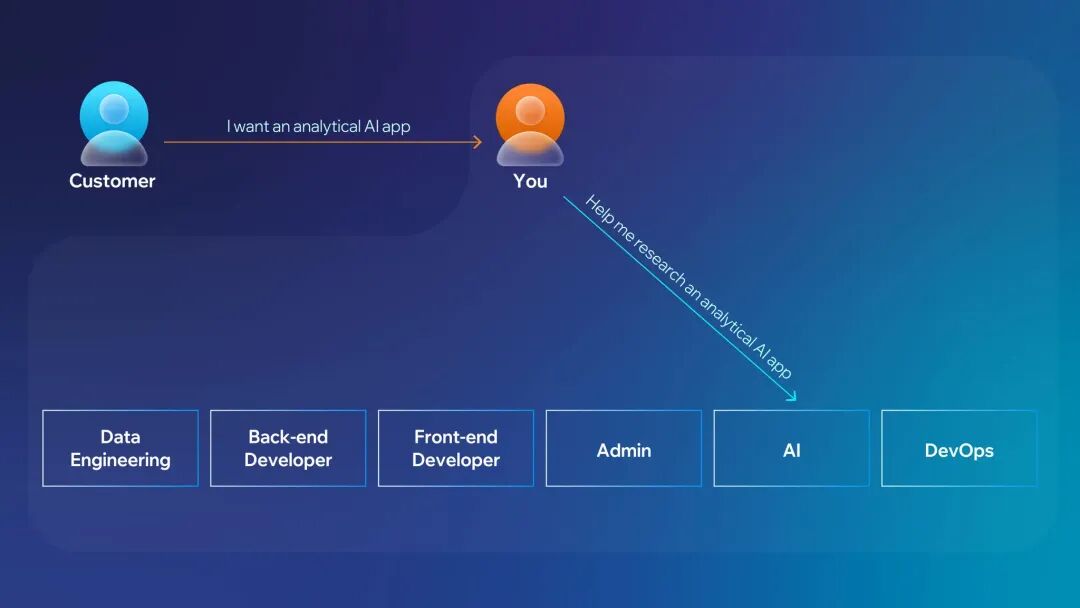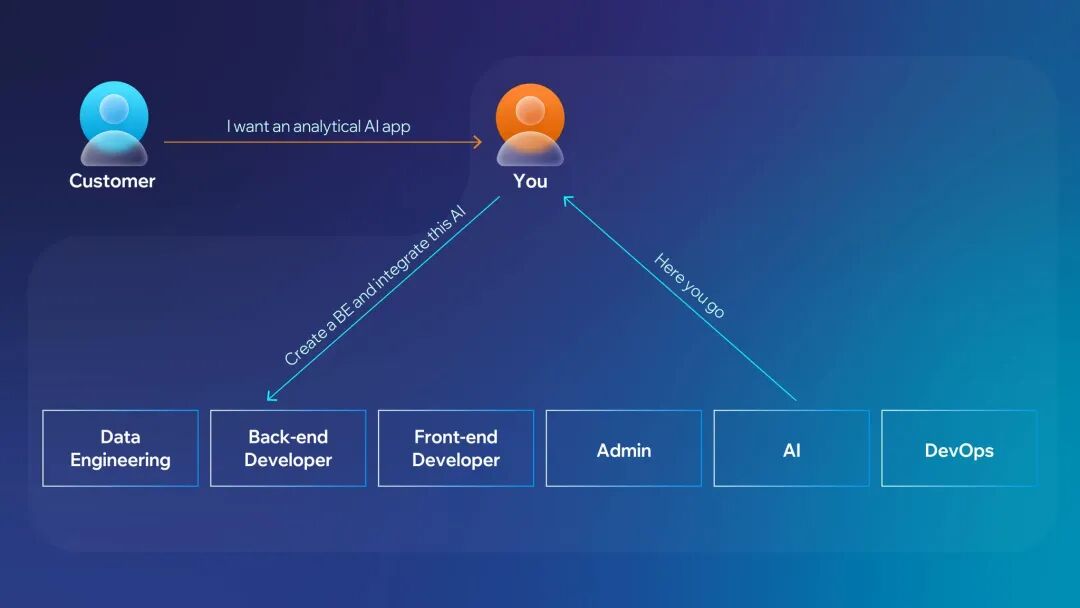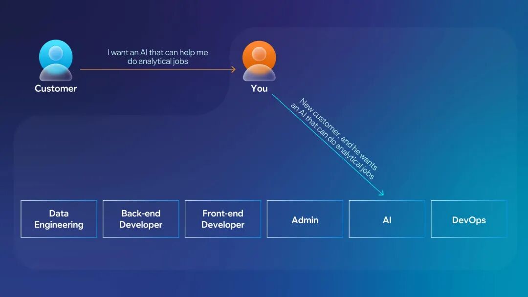客户想要一个用于分析工作的定制 AI。你直接把任务分给 AI 工程师,工程师开发测试完交给你,你再交付给客户。