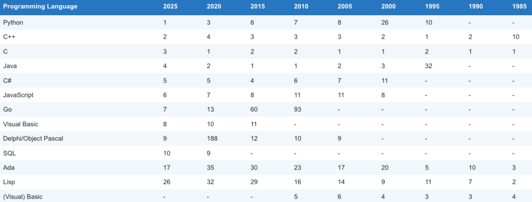 相比之下,最亮眼的反而是 C#,本月涨幅达到 2.67%,是榜单中增长最快的语言。尽管它的总体排名仍在 Python、C、C++、Java 之后位列第五,但势头明显强劲。对此,TIOBE CEO Paul Jansen 甚至预测,如果 C# 能维持这样的增速,它有望成为 2025 年的“年度编程语言”。
