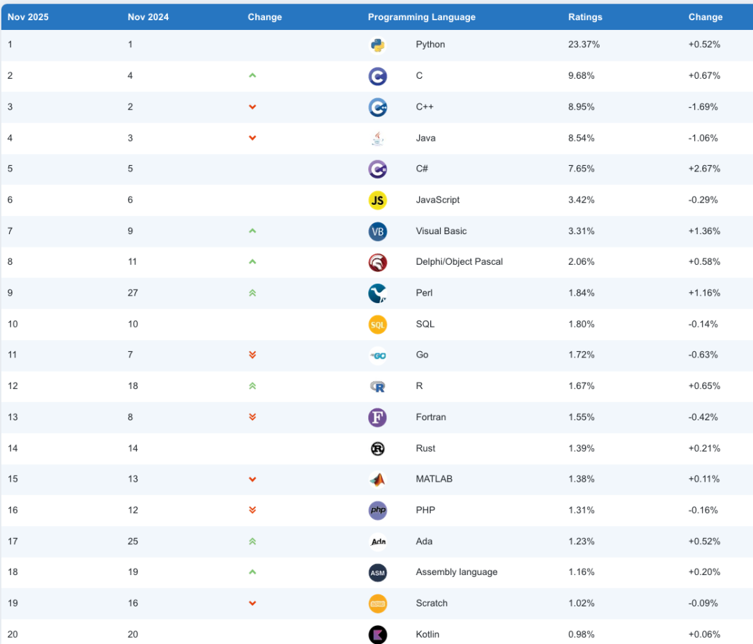 一月一度的 TIOBE 编程语言榜单最新发布,快来看看 11 月有哪些值得开发者关注的最新变化吧~