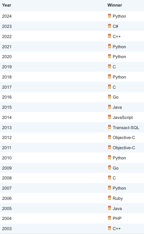 编程语言“名人榜”(2003-2024)