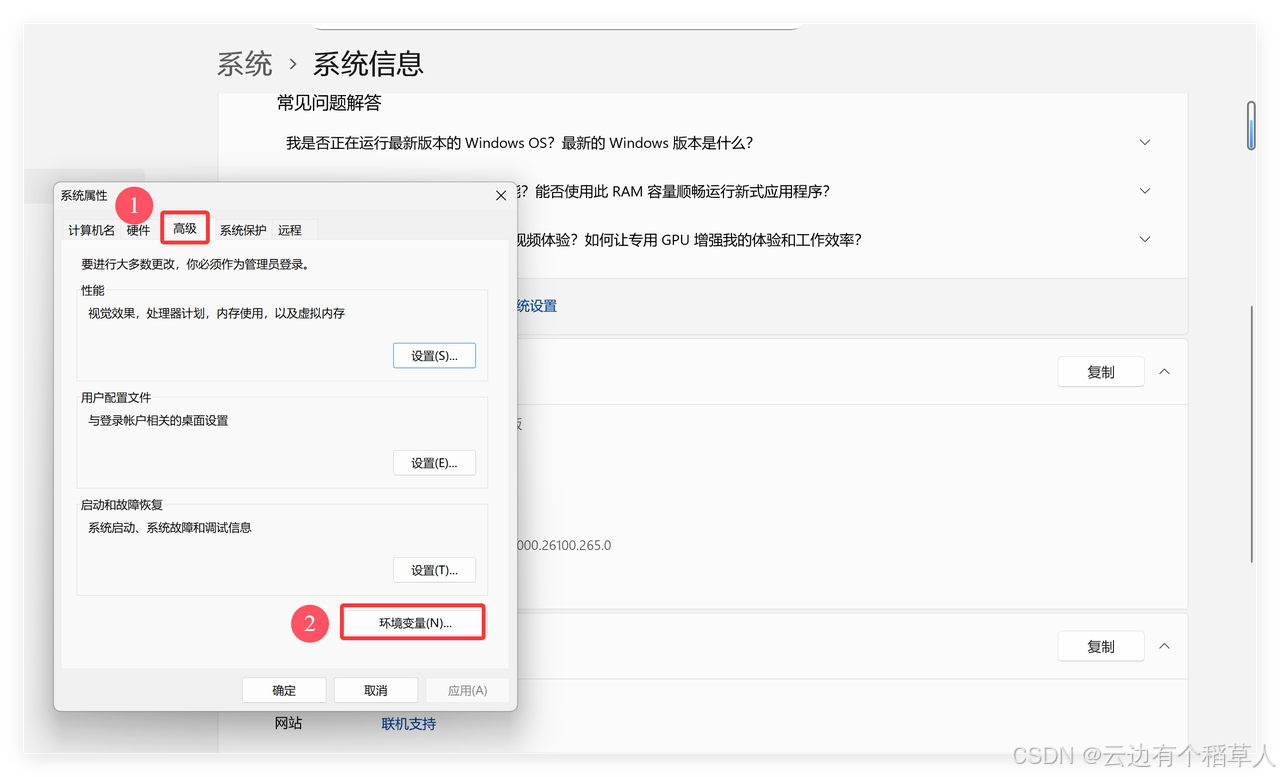 右键「此电脑」→「属性」→「高级系统设置」→「环境变量」