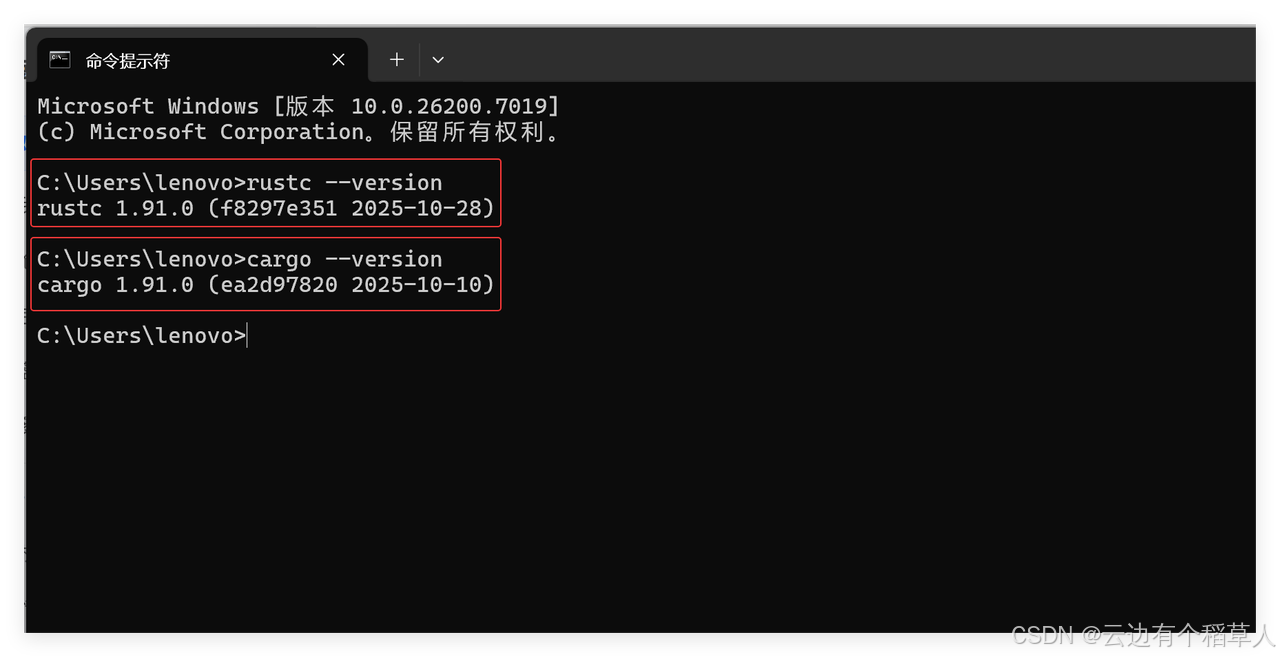 cargo 1.91.0 (ea2d97820 2025-10-10) # Cargo 的版本
