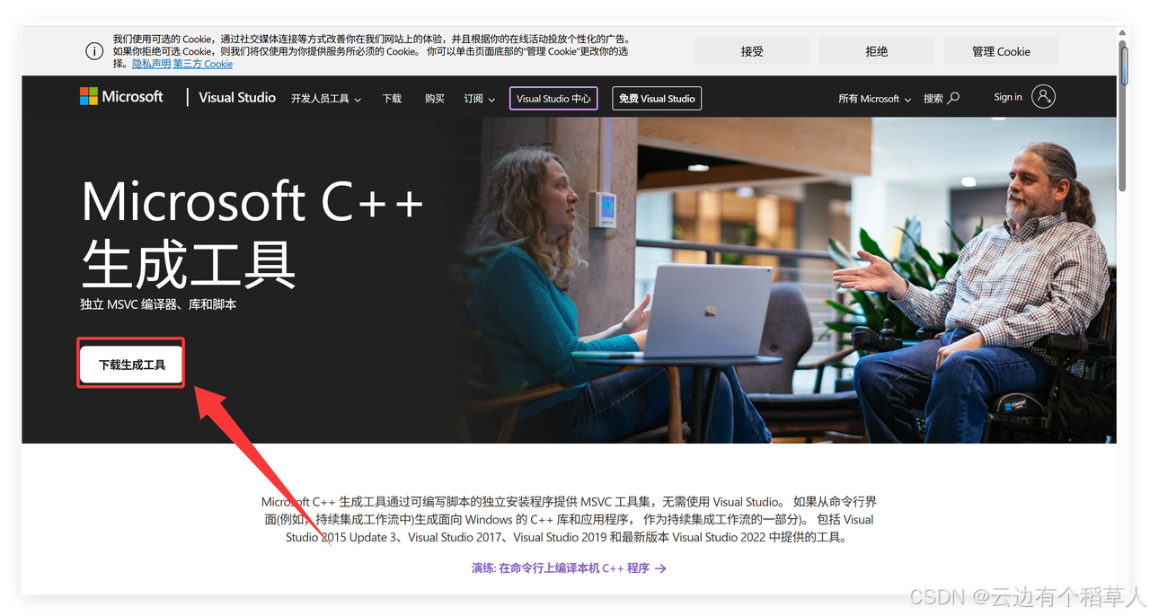 访问微软官方下载页:https://visualstudio.microsoft.com/zh-hans/visual-cpp-build-tools/