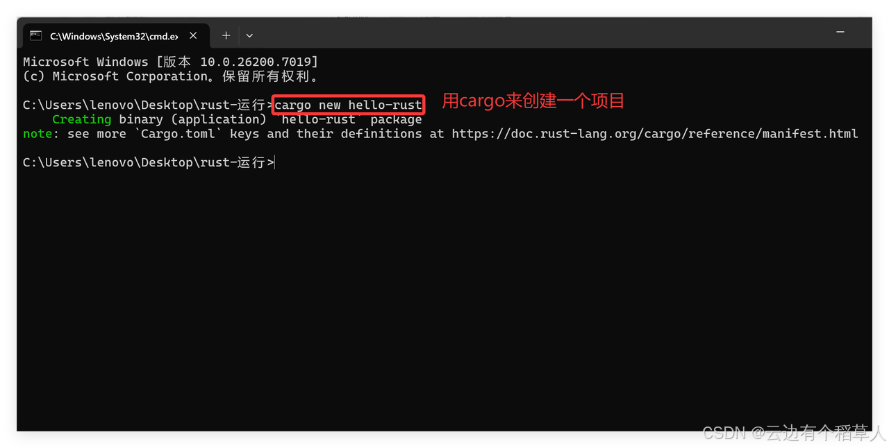 接着关闭这个终端,然后回到我们之前创建存放 rust 文件的文件夹,可以看到我们已经成功新建了 hello-rust项目