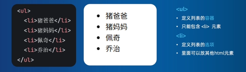 外部大标签ul,内部用li,且ul标签内部只能写li