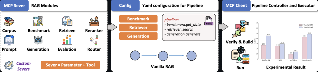 这个开源项目的核心思路是把 RAG 的核心组件封装为标准化的独立 MCP Server,提供函数级 Tool 接口支持灵活调用,借助 MCP 客户端建立简洁的链路搭建。