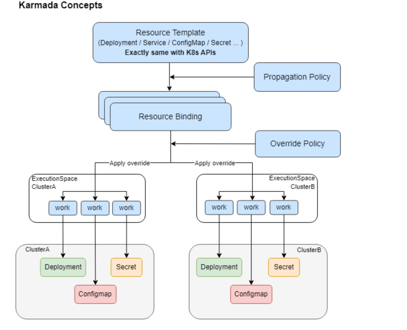 Karmada提供集中式多云管理、高可用性、故障恢复和流量调度等关键功能,兼容Kubernetes原生API,可实现从单集群到多集群的无侵入式升级。它的核心优势包括: