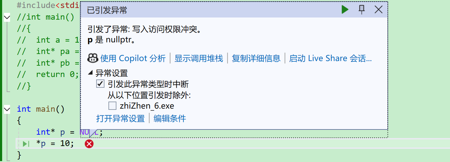 概念:野指针就是指针指向的位置是不可知的(随机的、不正确的、没有明确限制的)。
