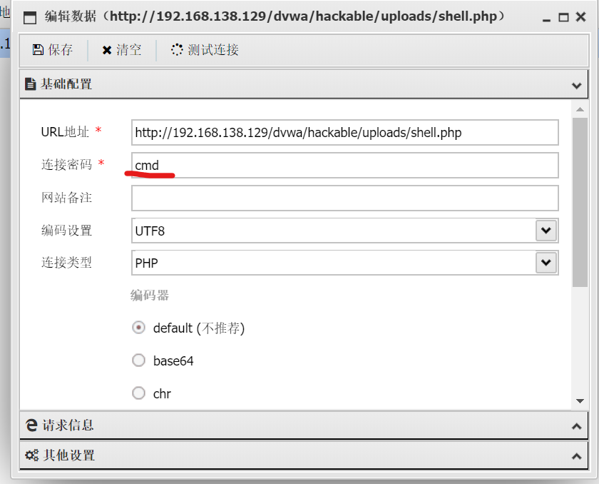 这里的连接密码是刚才传参用的字段