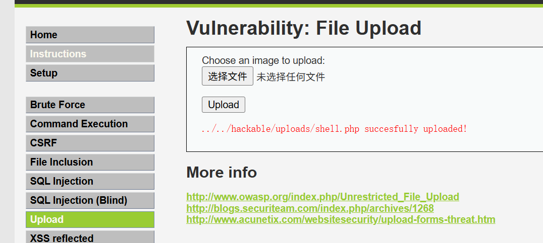 利用DVWA的文件上传漏洞把shell.php上传到服务器